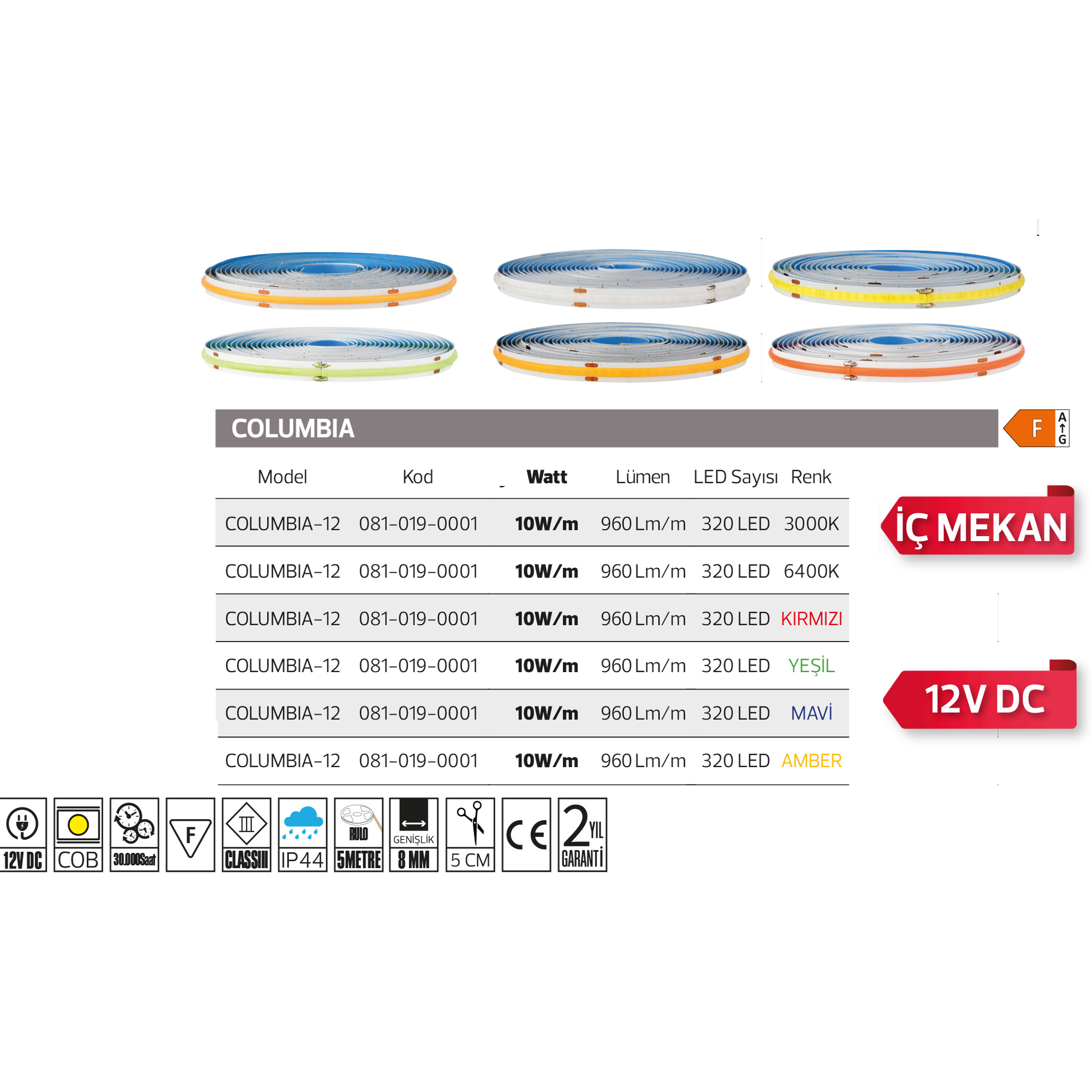 Mavi ,Yeşil ,3000K ,6400K ,Amber ,Kırmızı |